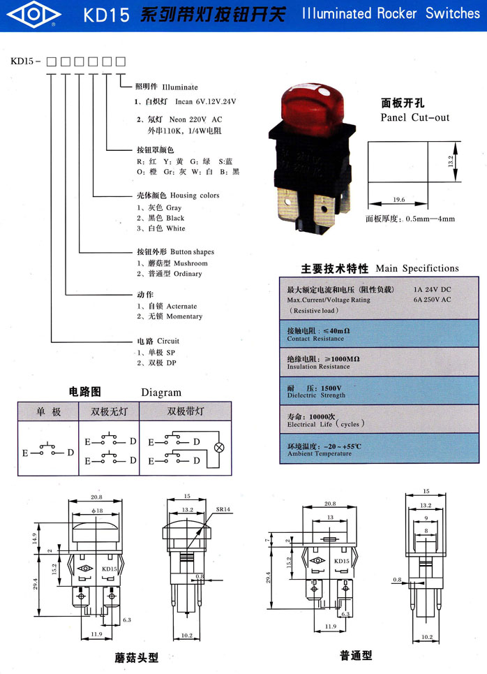• KD15系列帶燈按鈕開關(guān) 產(chǎn)品型號(hào):KD15系列