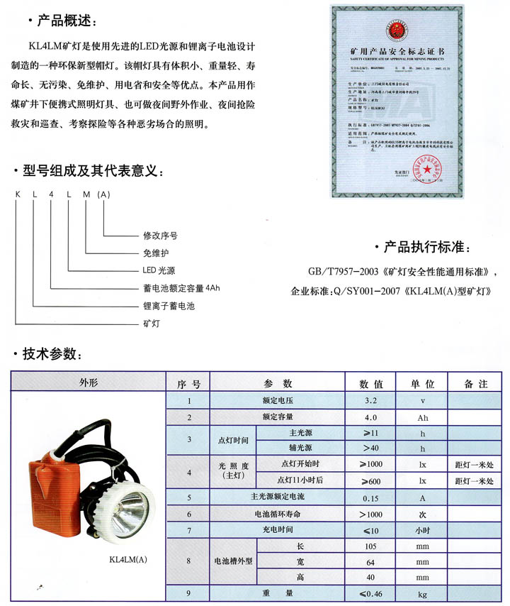 • KL4ML(A)型礦燈 產(chǎn)品型號:KL4ML(A)型礦燈