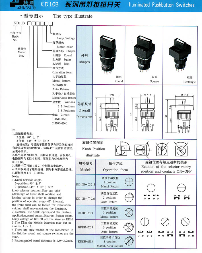 • KD10B系列帶燈按鈕開(kāi)關(guān) 產(chǎn)品型號(hào):KD10B
